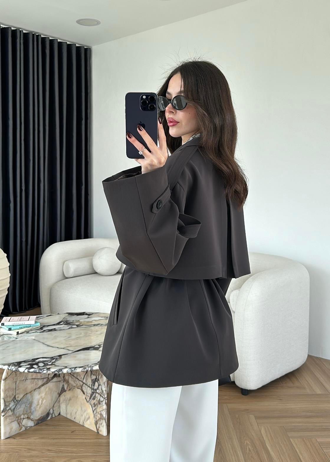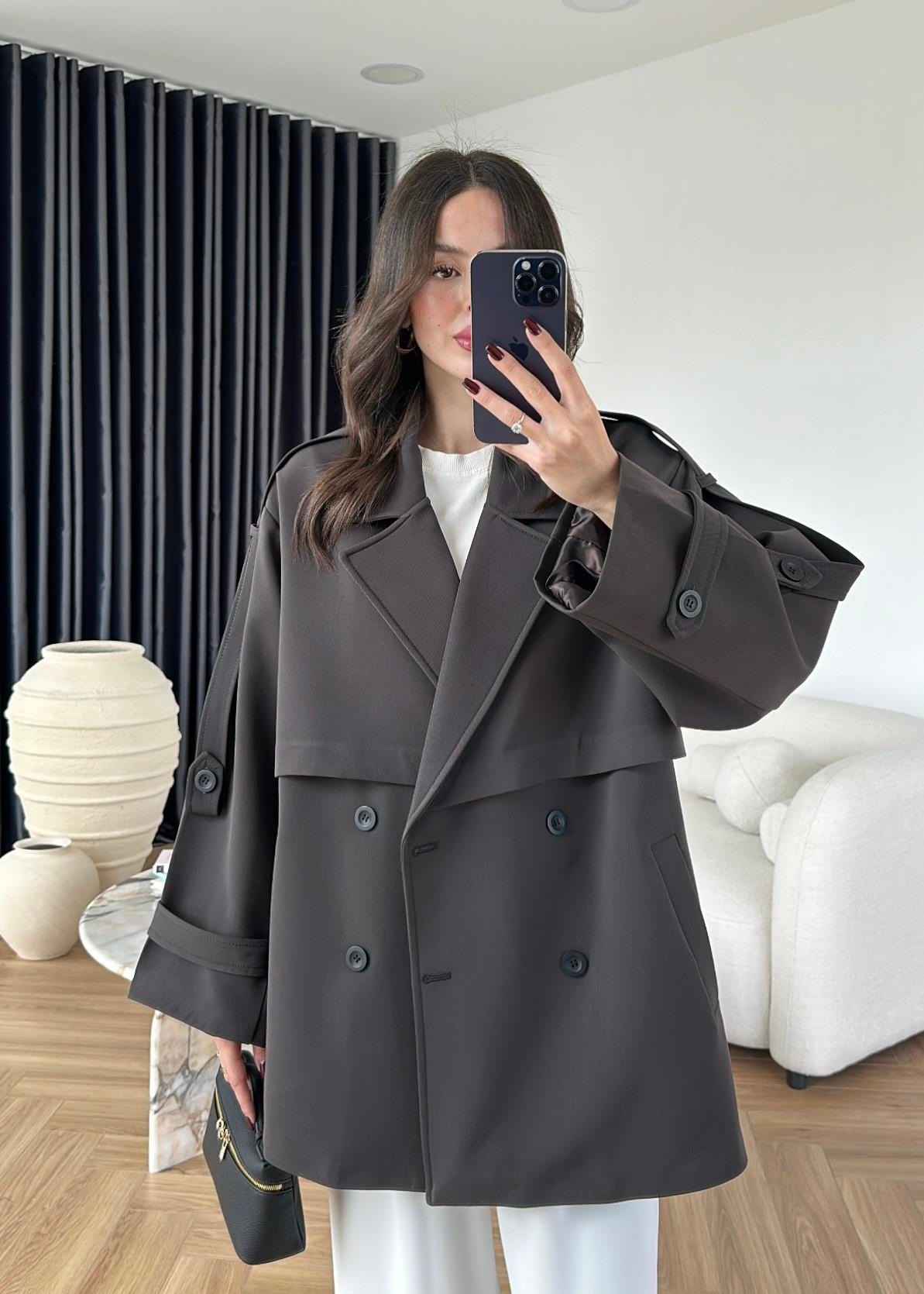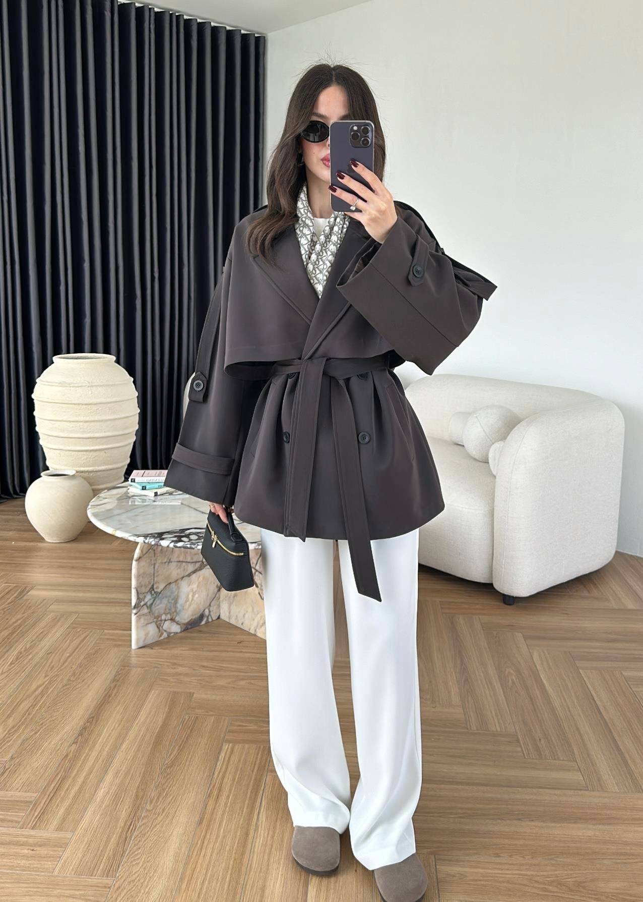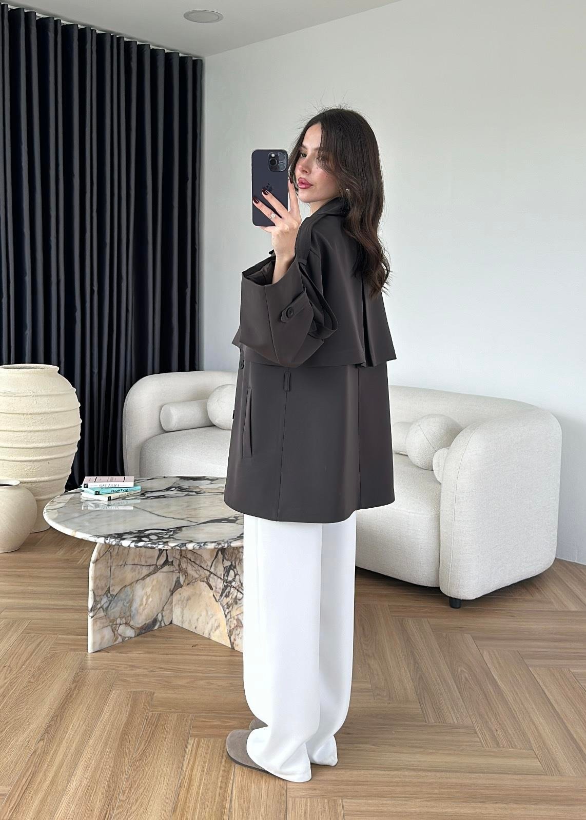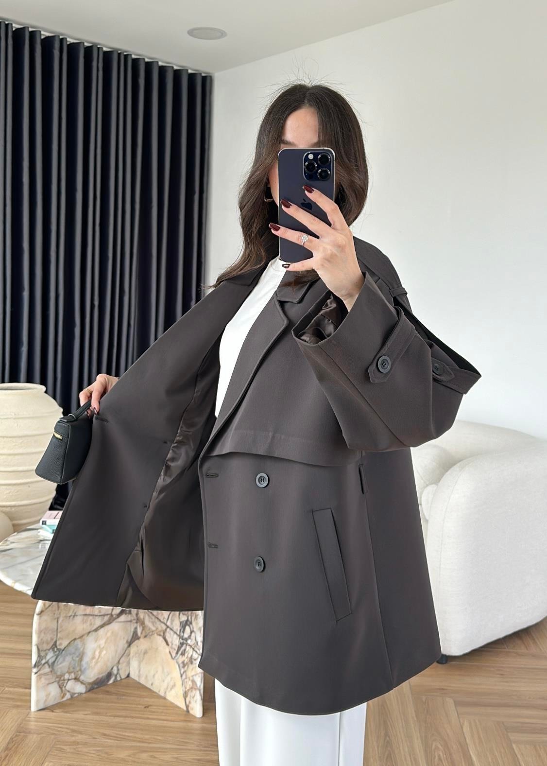 Çekimde S Beden kullanılmıştır,Astarlı kuşaklı ve ceplidir.