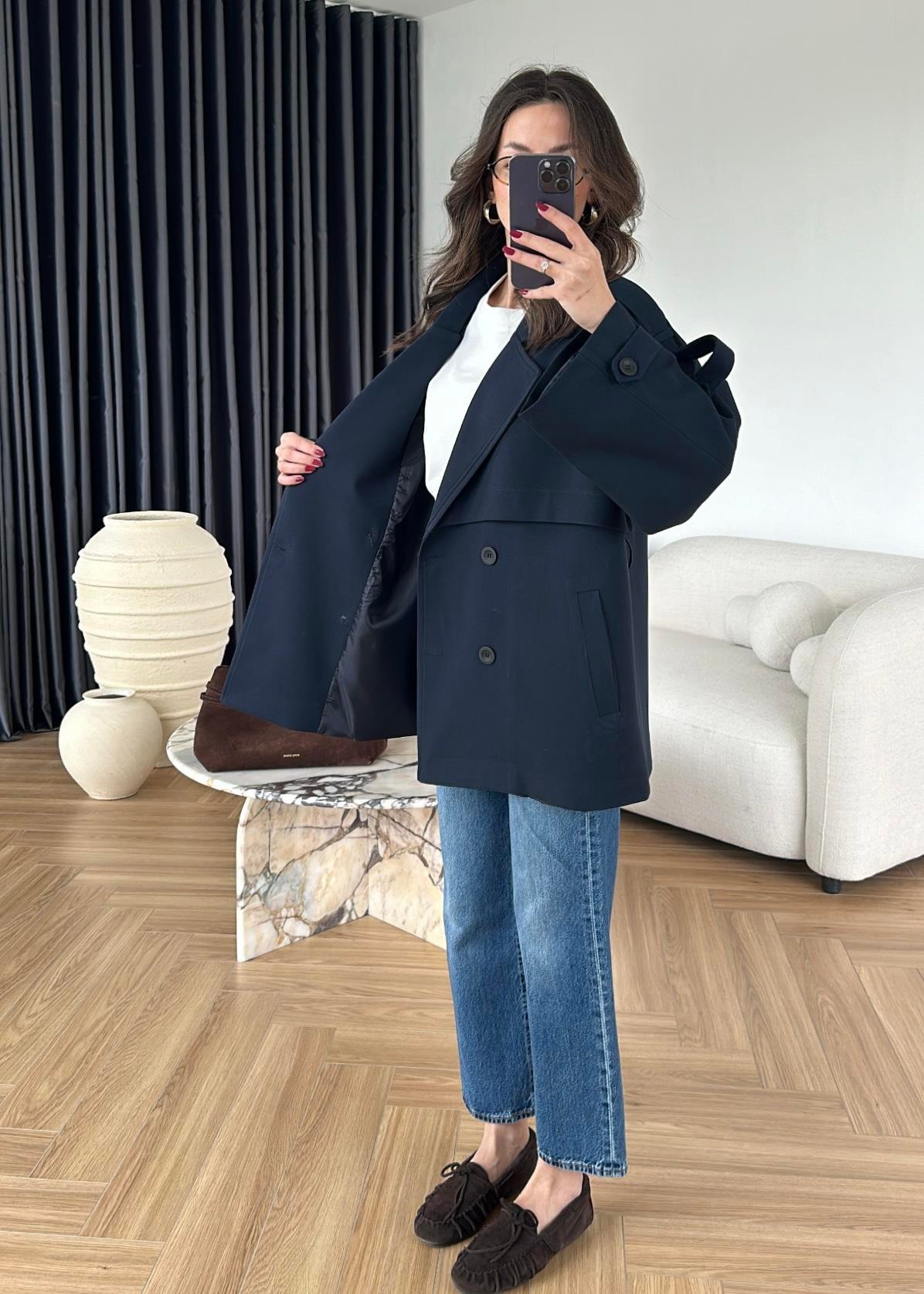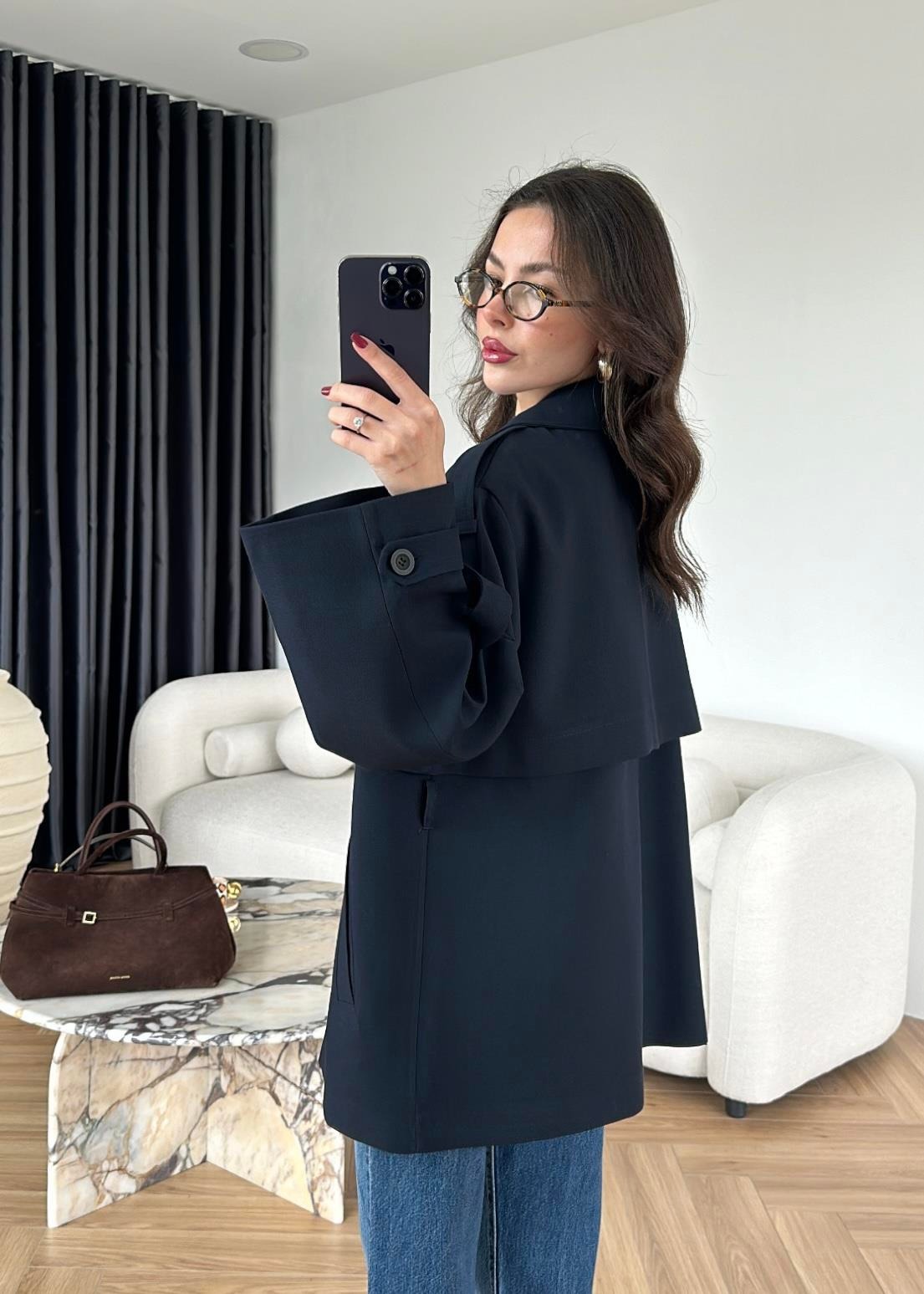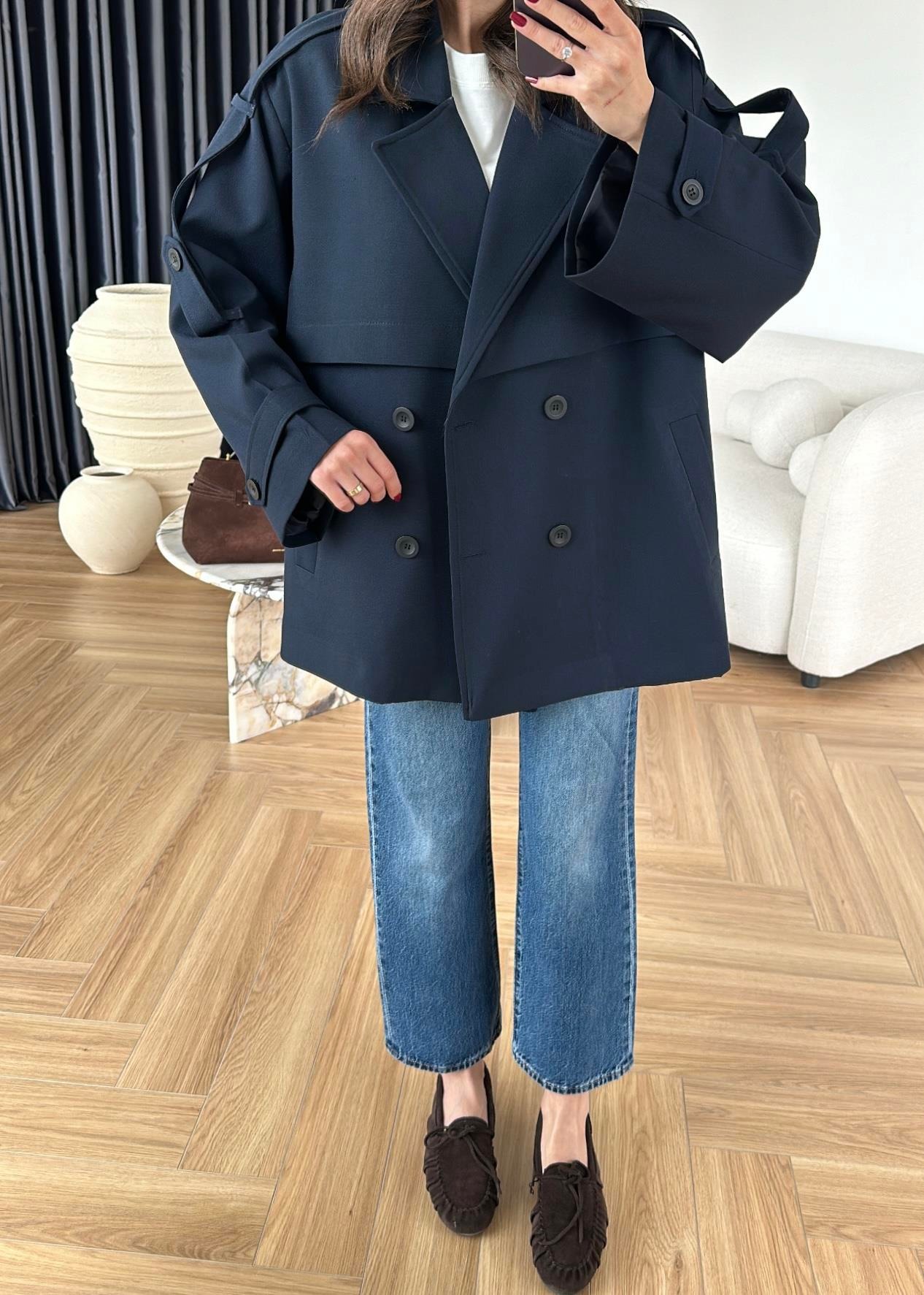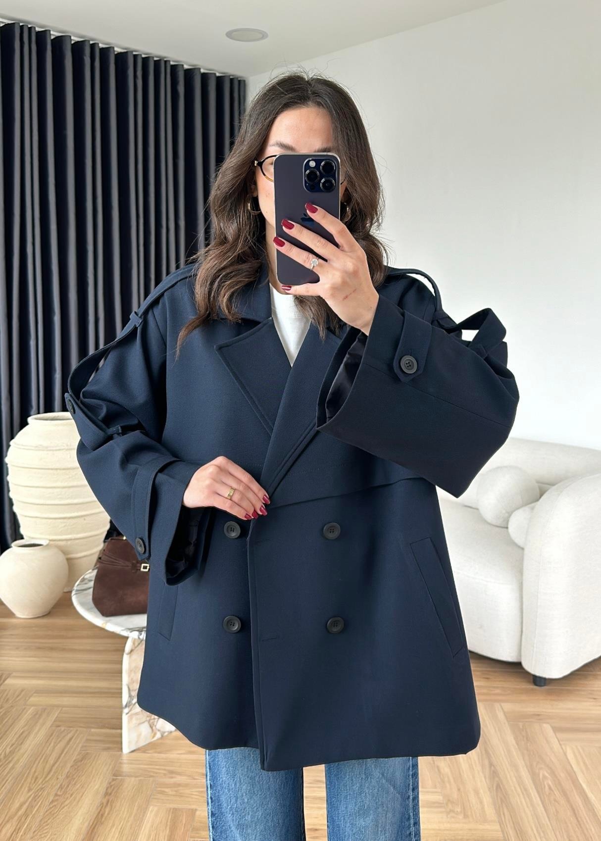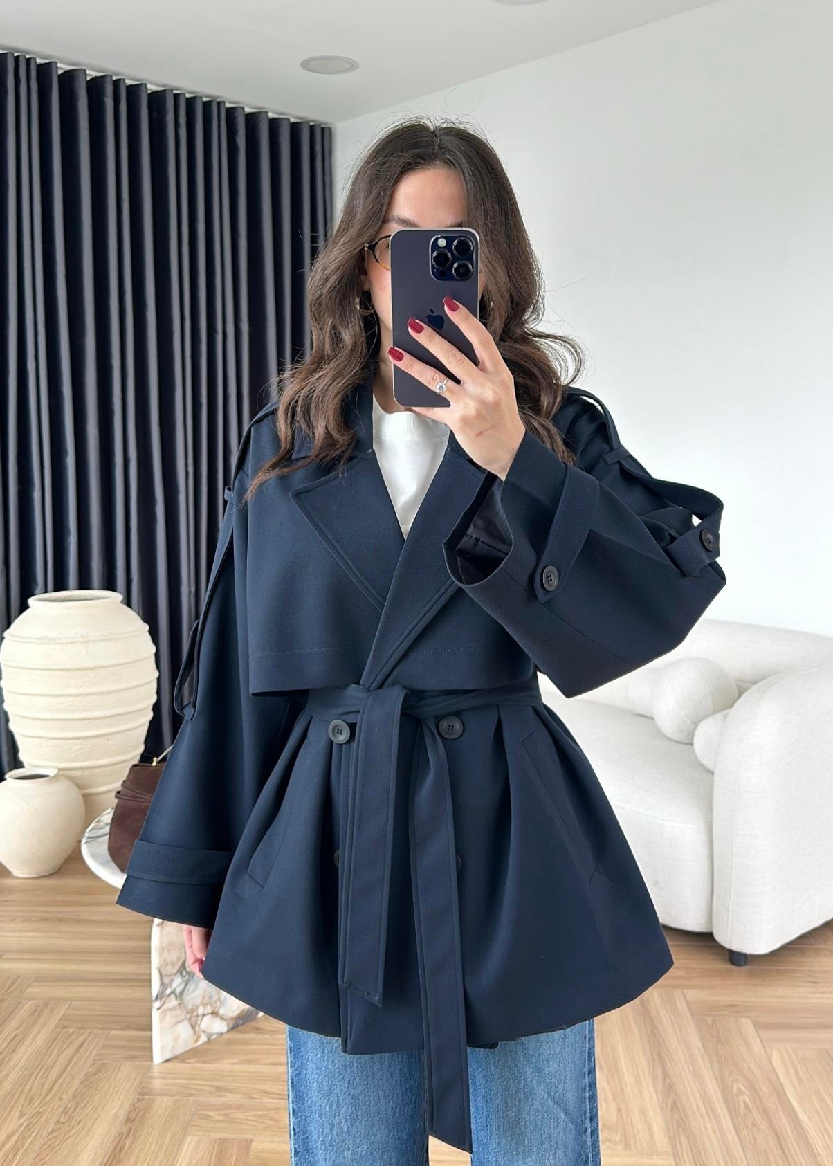 Rüzgarlıklı Ara Boy Trençkot KOYU LACİVERT