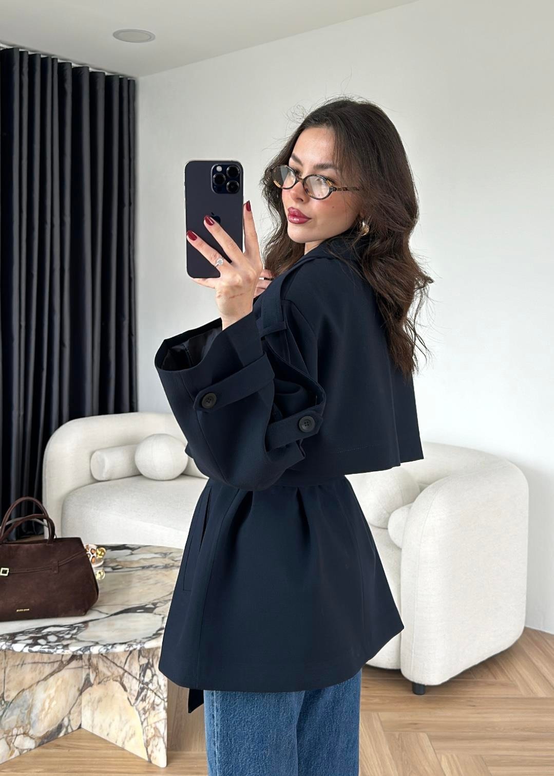 Çekimde S Beden kullanılmıştır,Astarlı kuşaklı ve ceplidir.
