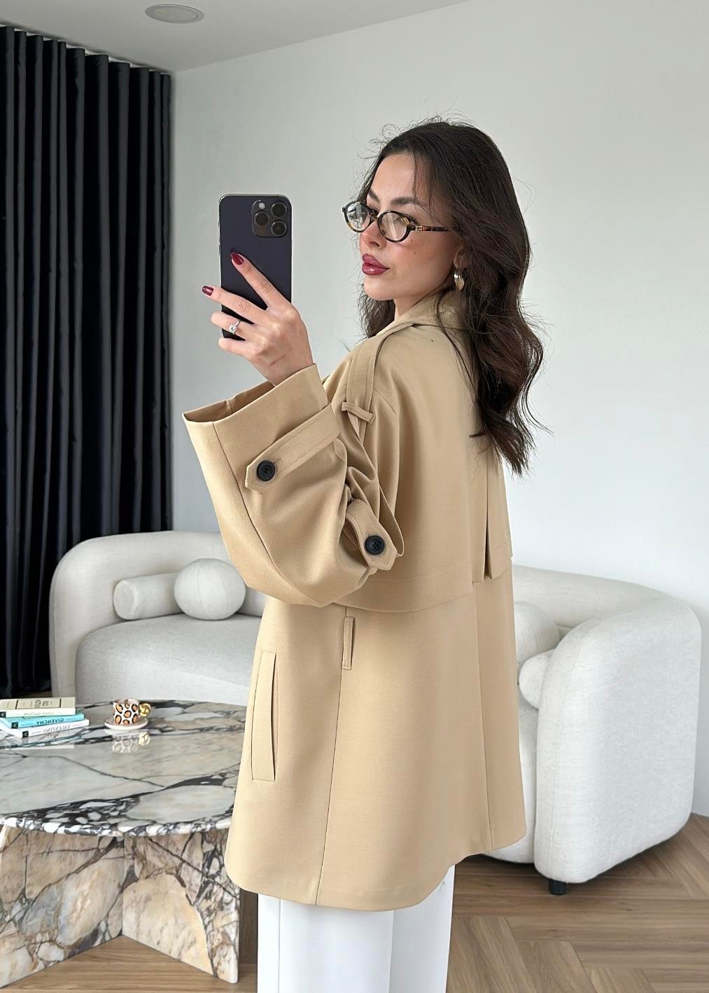 Rüzgarlıklı Ara Boy Trençkot BEJ