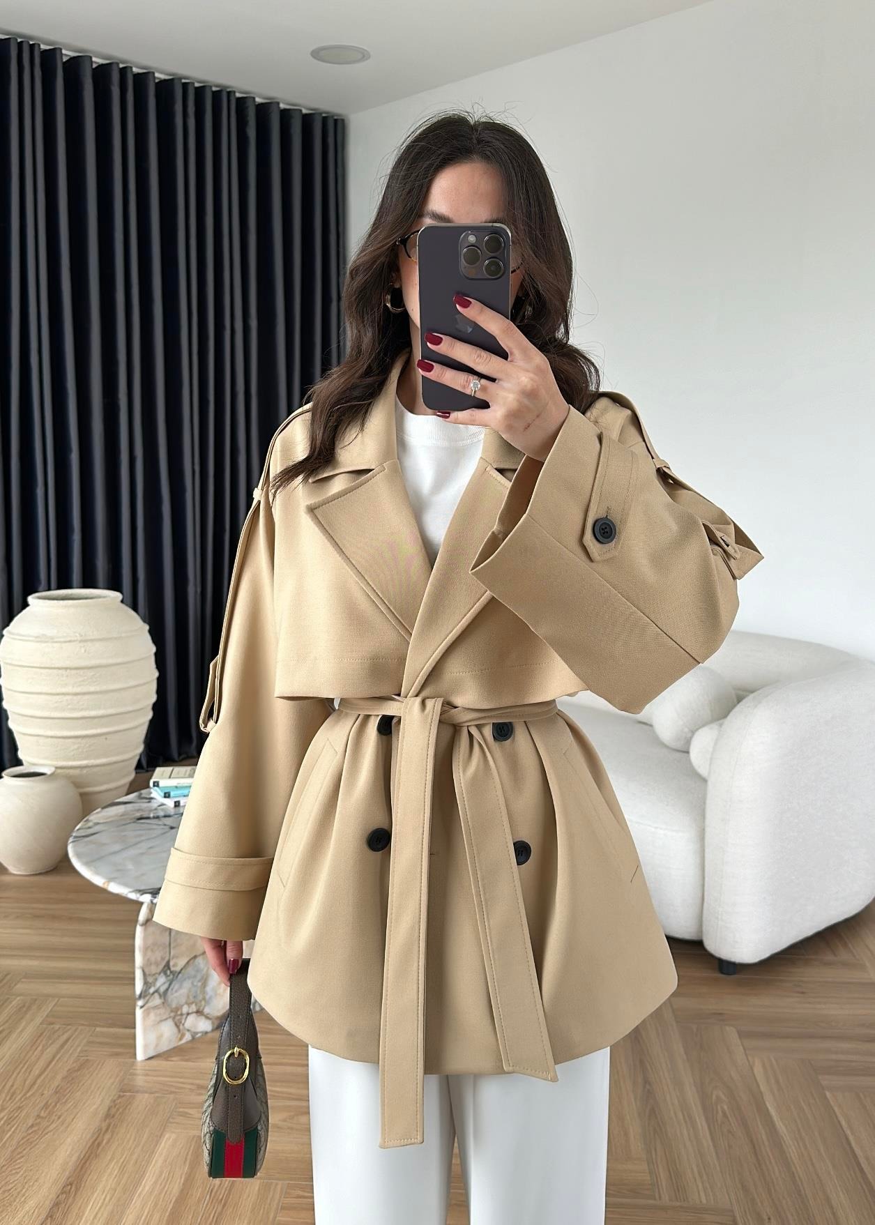 Çekimde S Beden kullanılmıştır,Astarlı kuşaklı ve ceplidir.