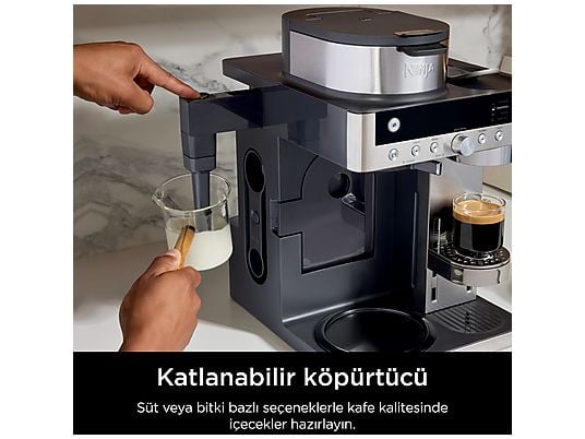 Entegre, katlanabilir sıcak-soğuk süt köpürtücü, birkaç dakikada latte, cappuccino veya flat white hazırlamanızı sağlar.