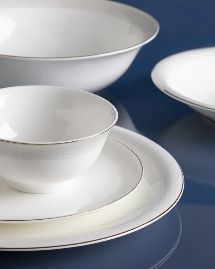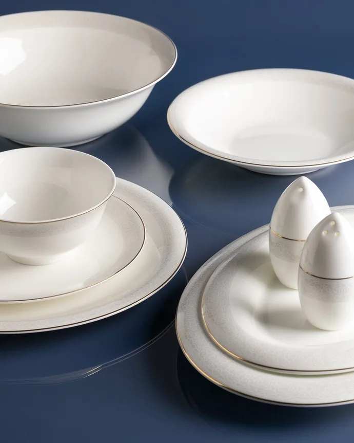 Şıklığı ve zarafeti bir araya getiren bu özel yemek takımı, Fine Bone inceliğinde üretilmiş materyaliyle sofralarınıza benzersiz bir dokunuş katıyor. Özel dekal tekniğiyle uygulanan canlı desenler, gerçek altın detaylarla buluşarak göz alıcı bir görünüm sunuyor. Her bir parçası özenle tasarlanmış bu yemek takımı, sadece günlük kullanıma değil, özel davetlerinize de şıklık katmak için ideal. Altın detaylar, modern ve klasik sofralara kolayca uyum sağlarken, kalitesiyle uzun yıllar keyifle kullanabileceğiniz bir deneyim sunar.