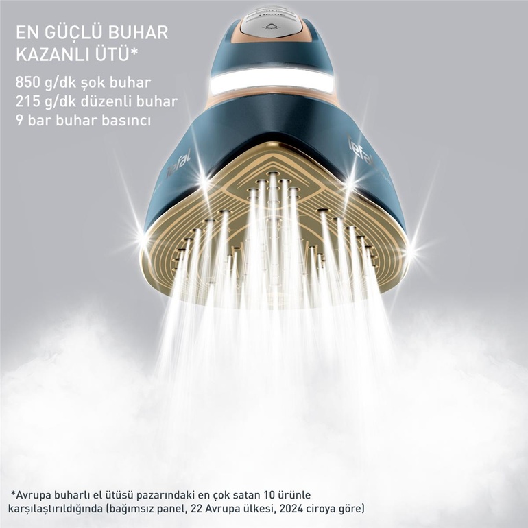 850 g/dakika şok buhar, 215 g/dakika sürekli buhar çıkışı ve 9 bar buhar basıncı sayesinde en zorlu kırışıklıklarda bile ekstra güçlü ve etkil ütüleme performansı sunar.