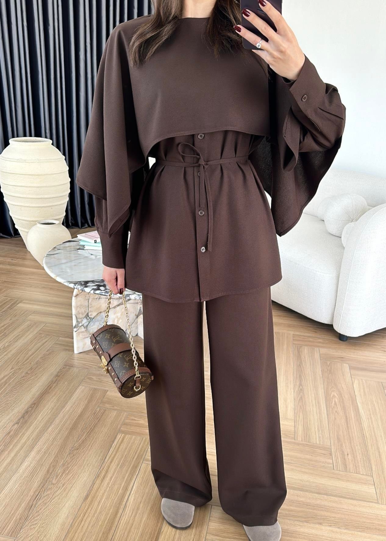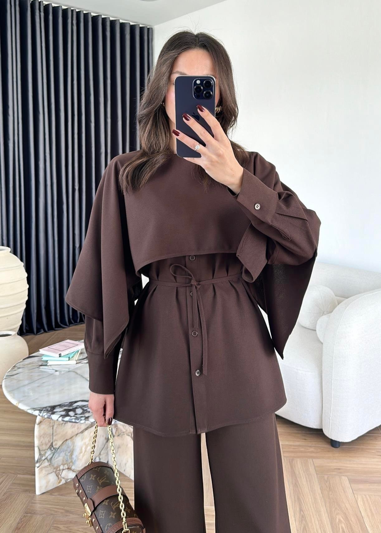 Pelerinli Palazzo Pantolonlu Takım ACI KAHVE