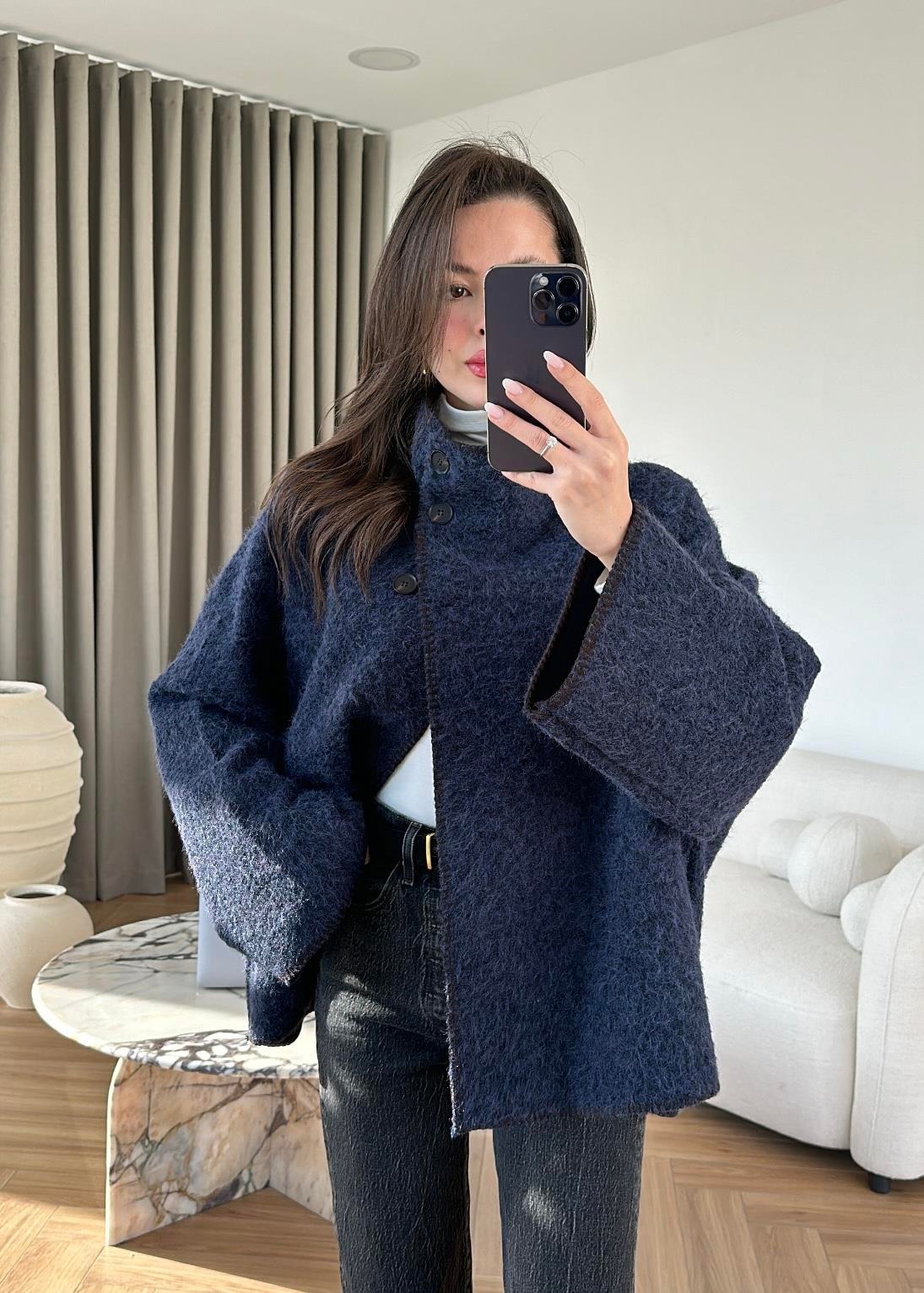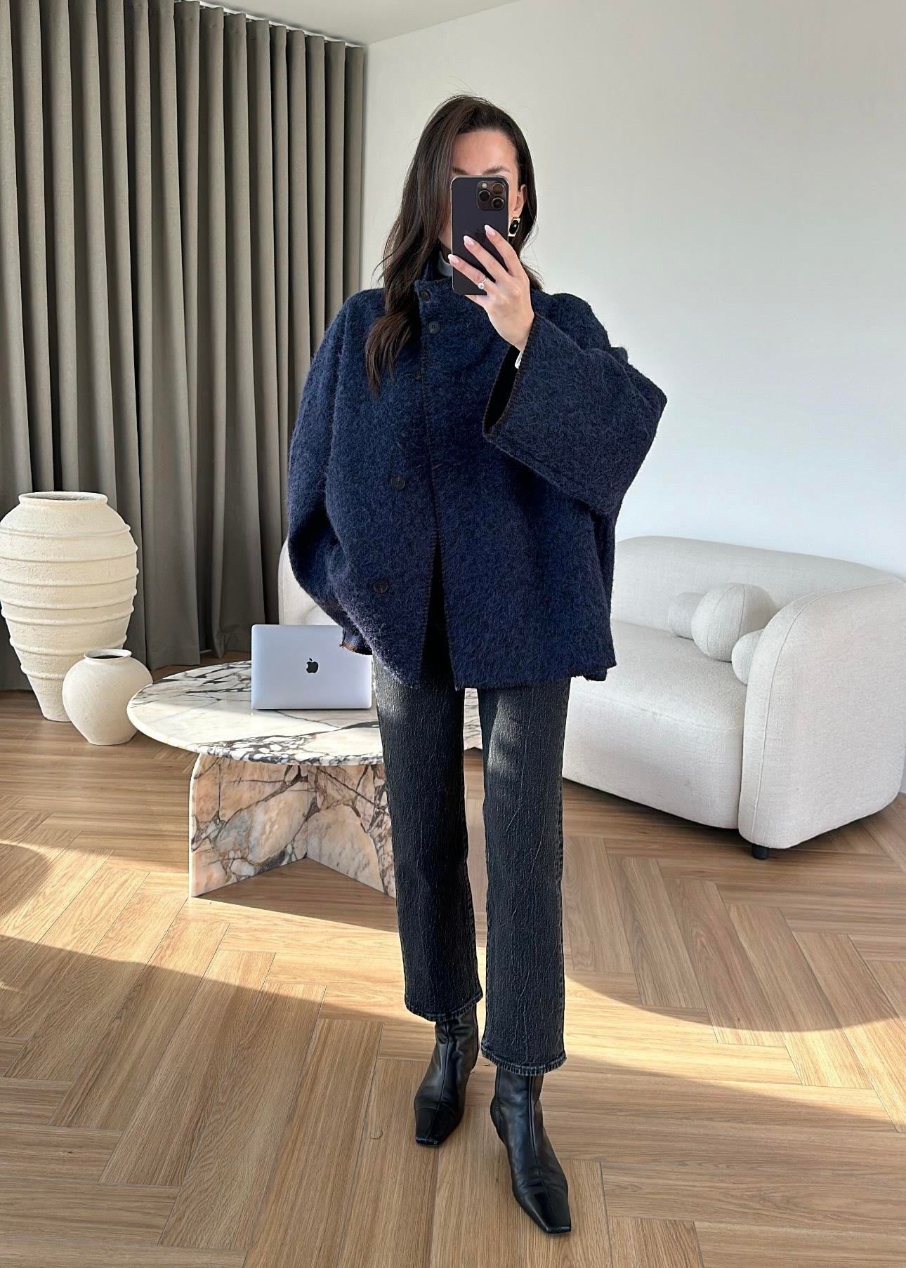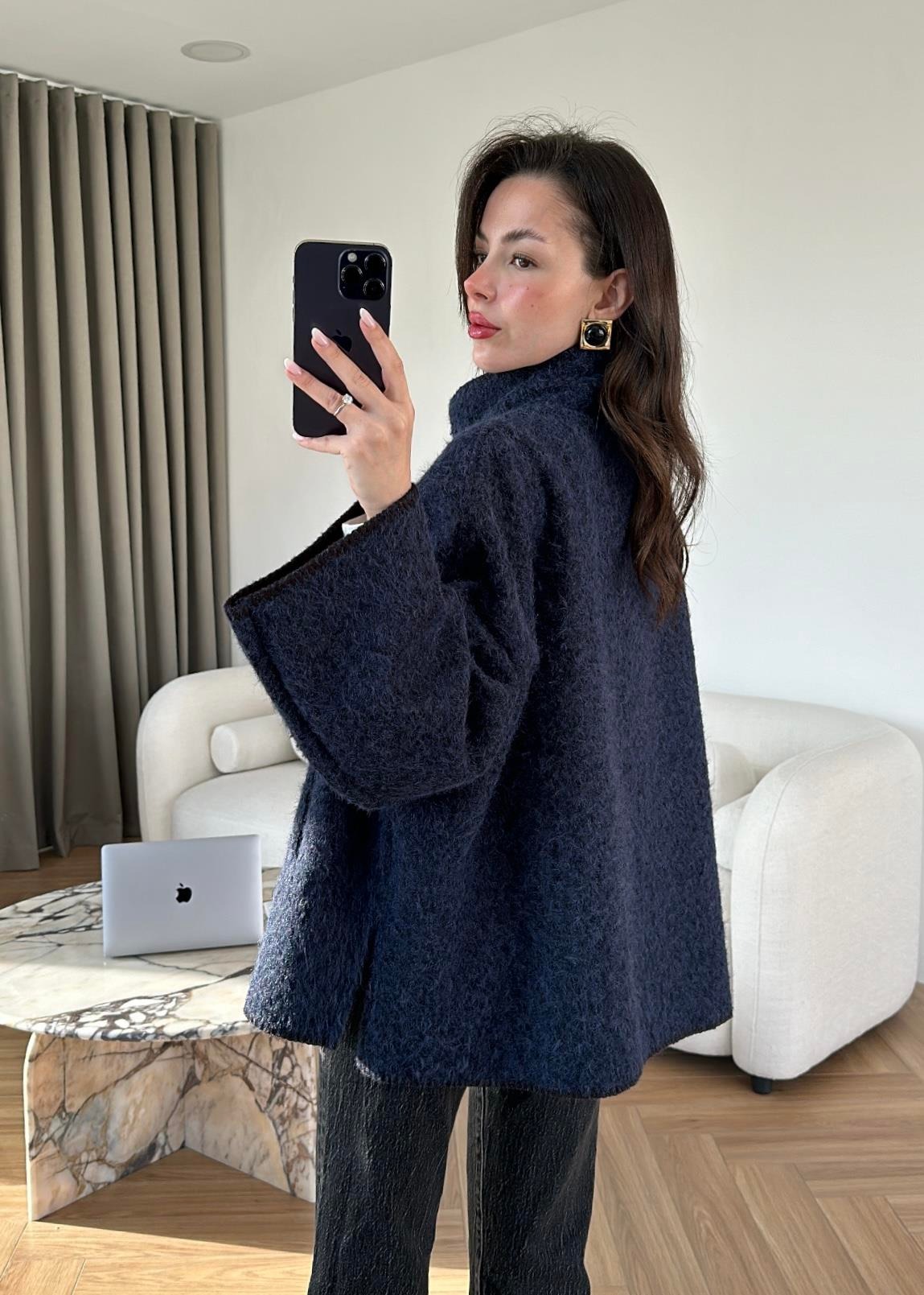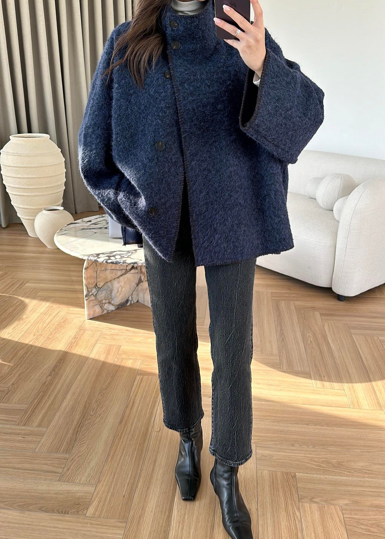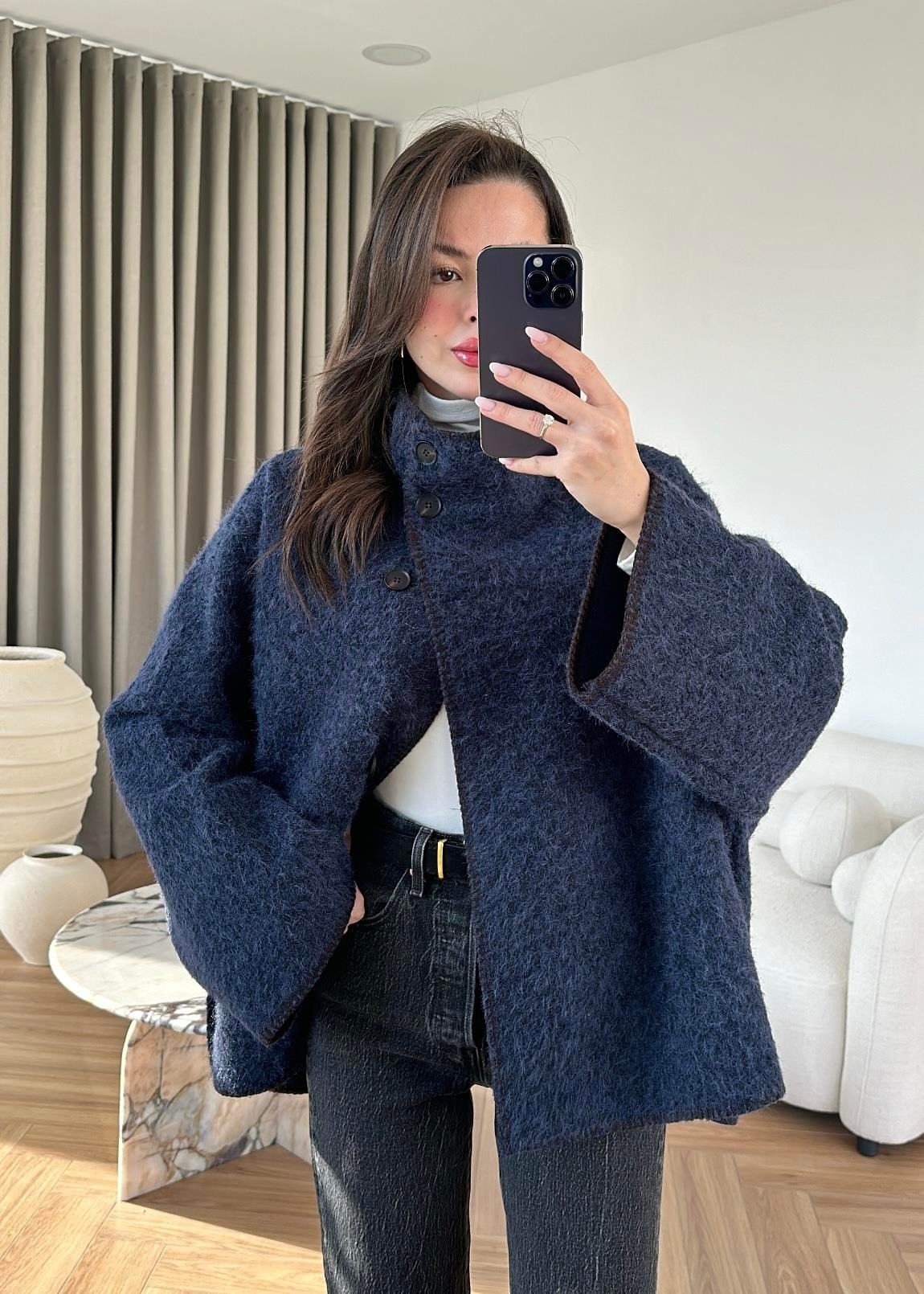 Çımalı Kırçıllı İnce Kaban LACİVERT