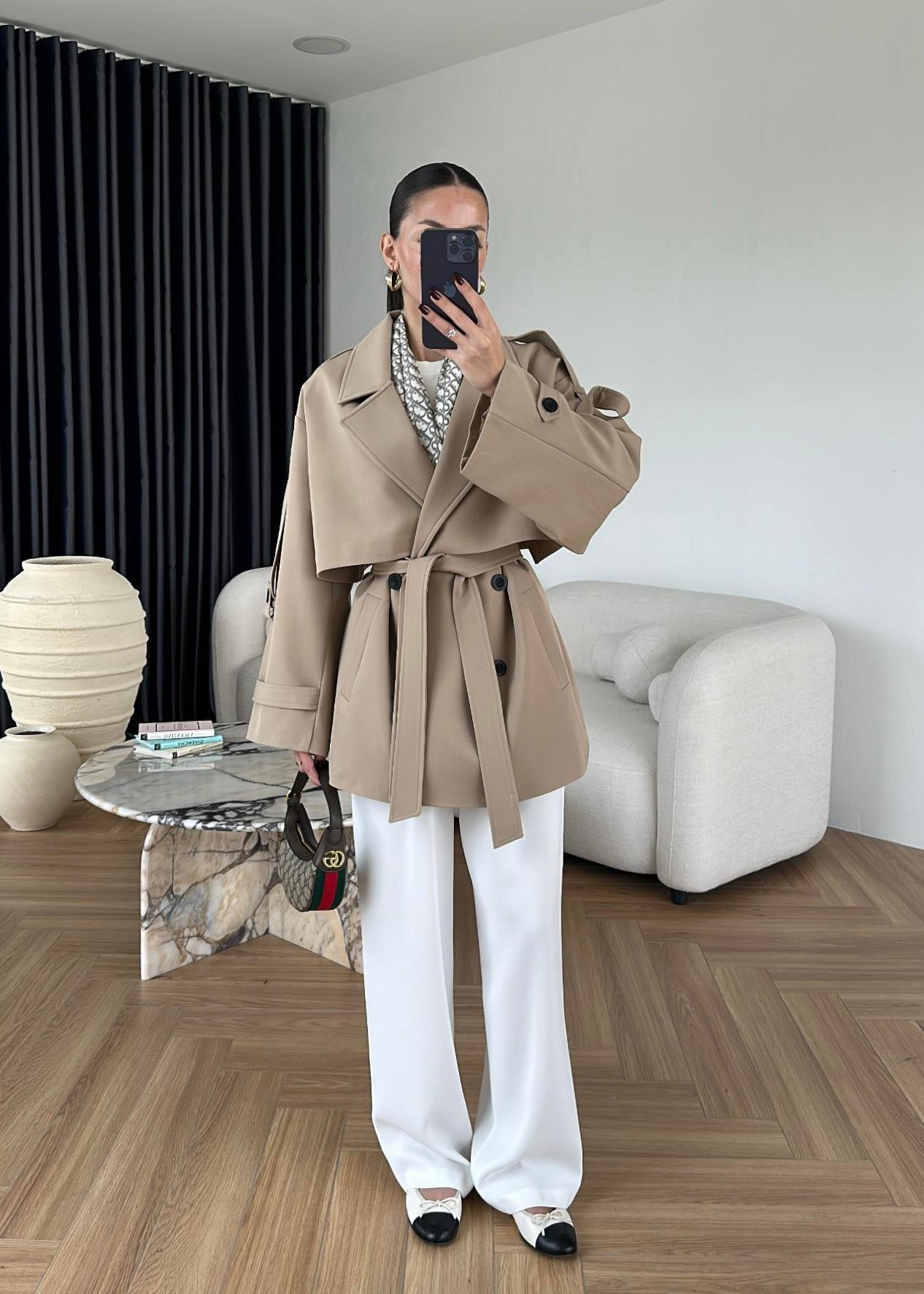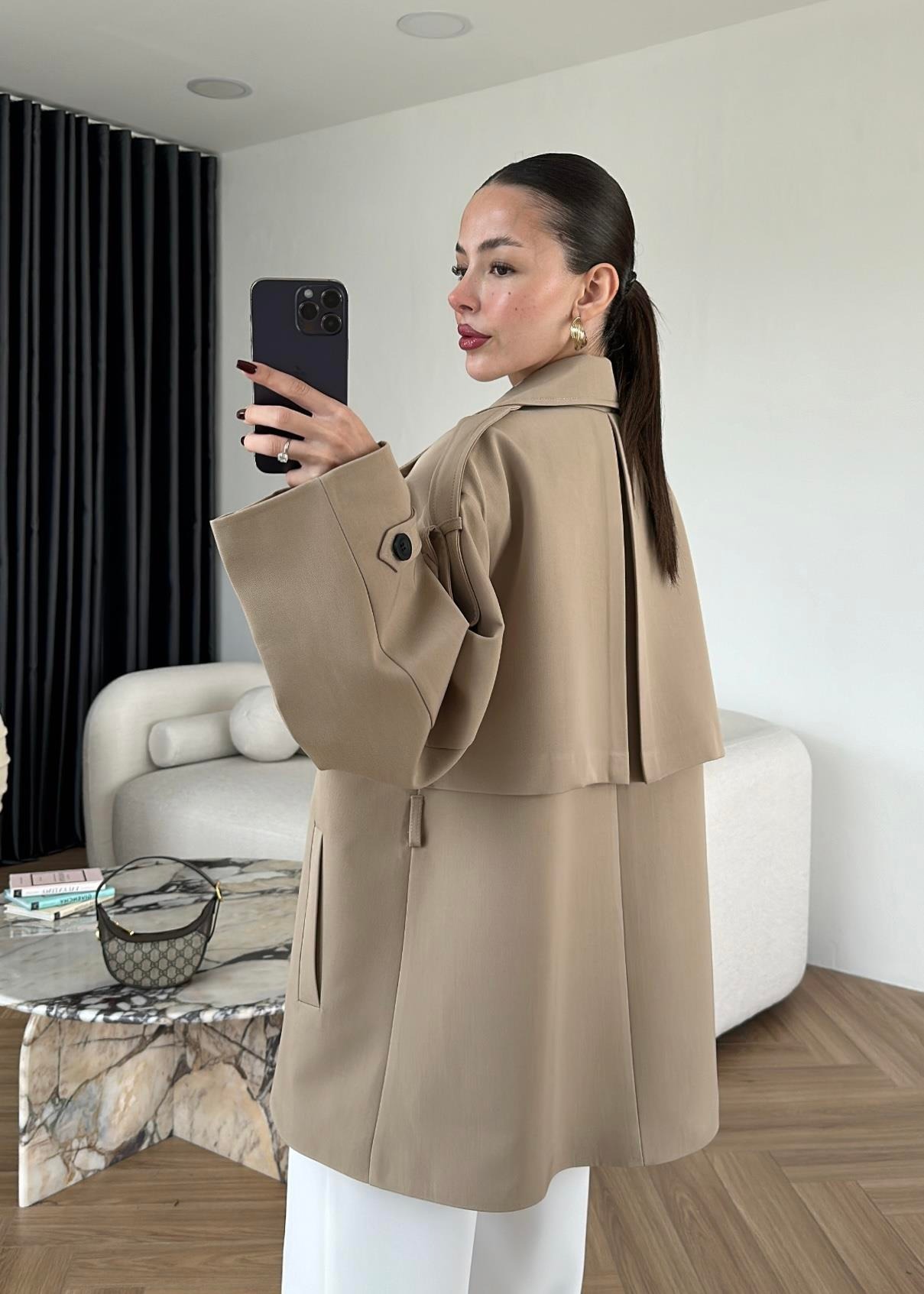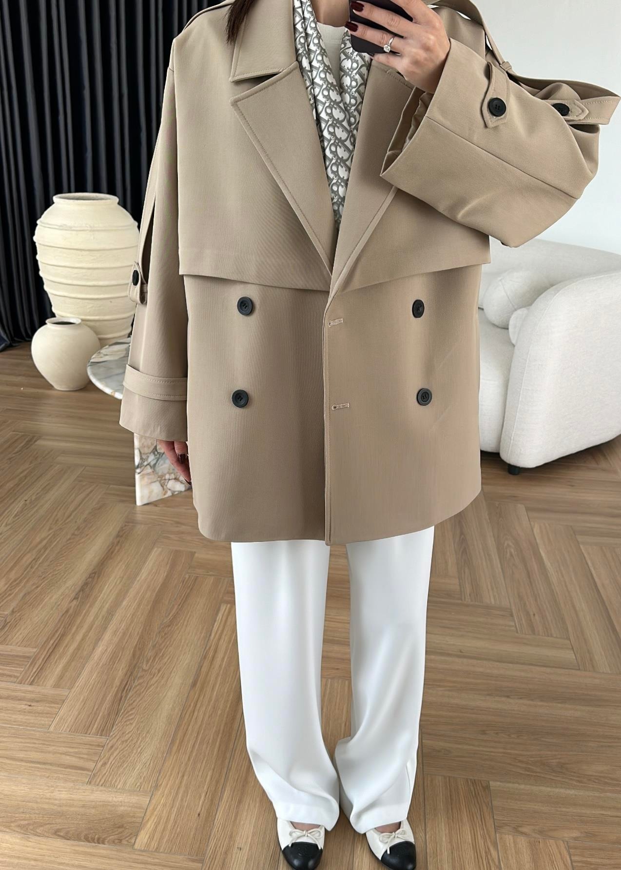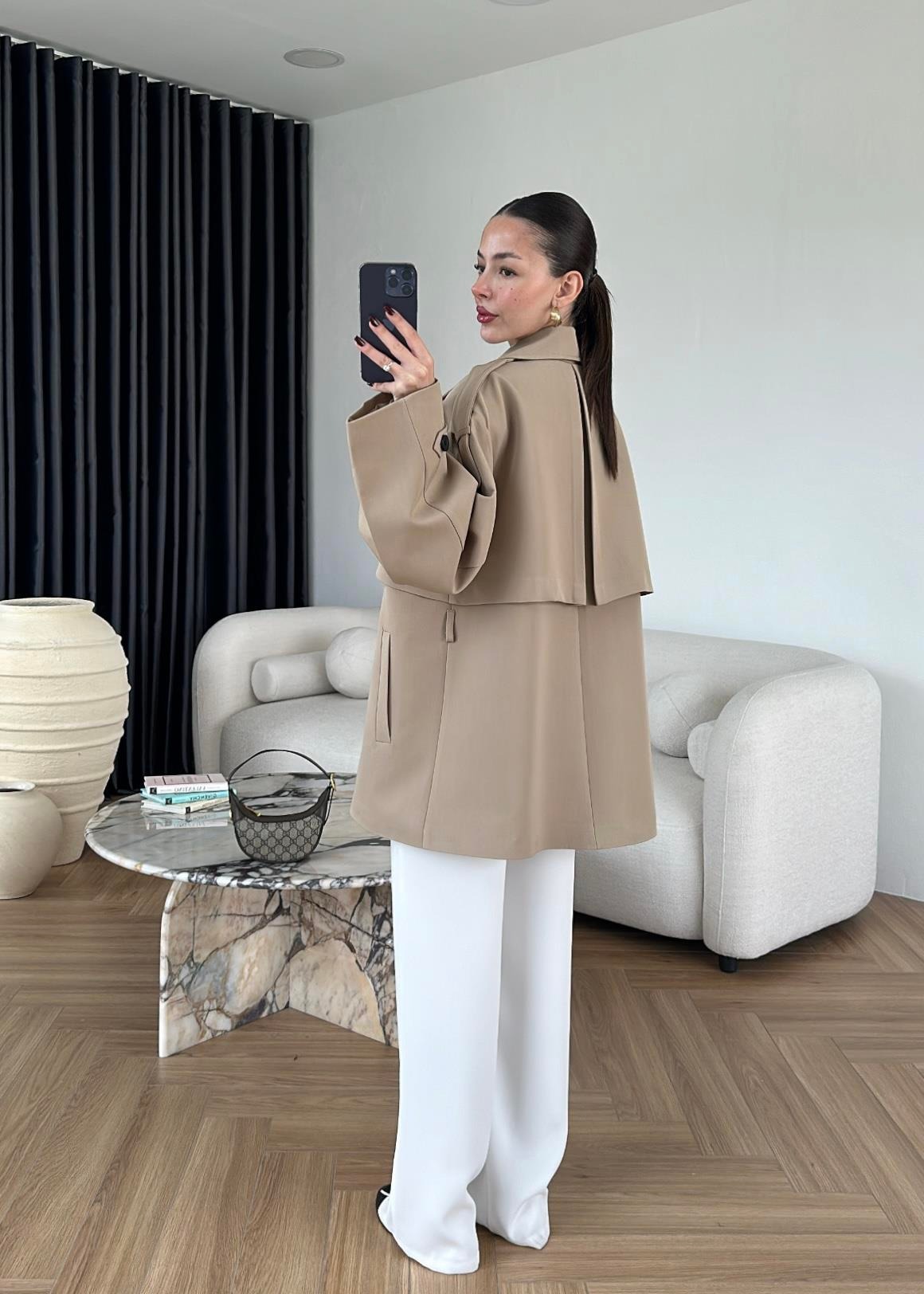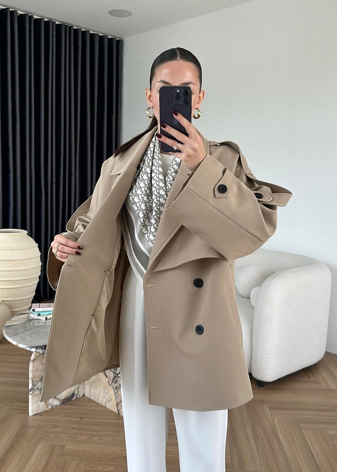 Çekimde S Beden kullanılmıştır,Astarlı kuşaklı ve ceplidir.