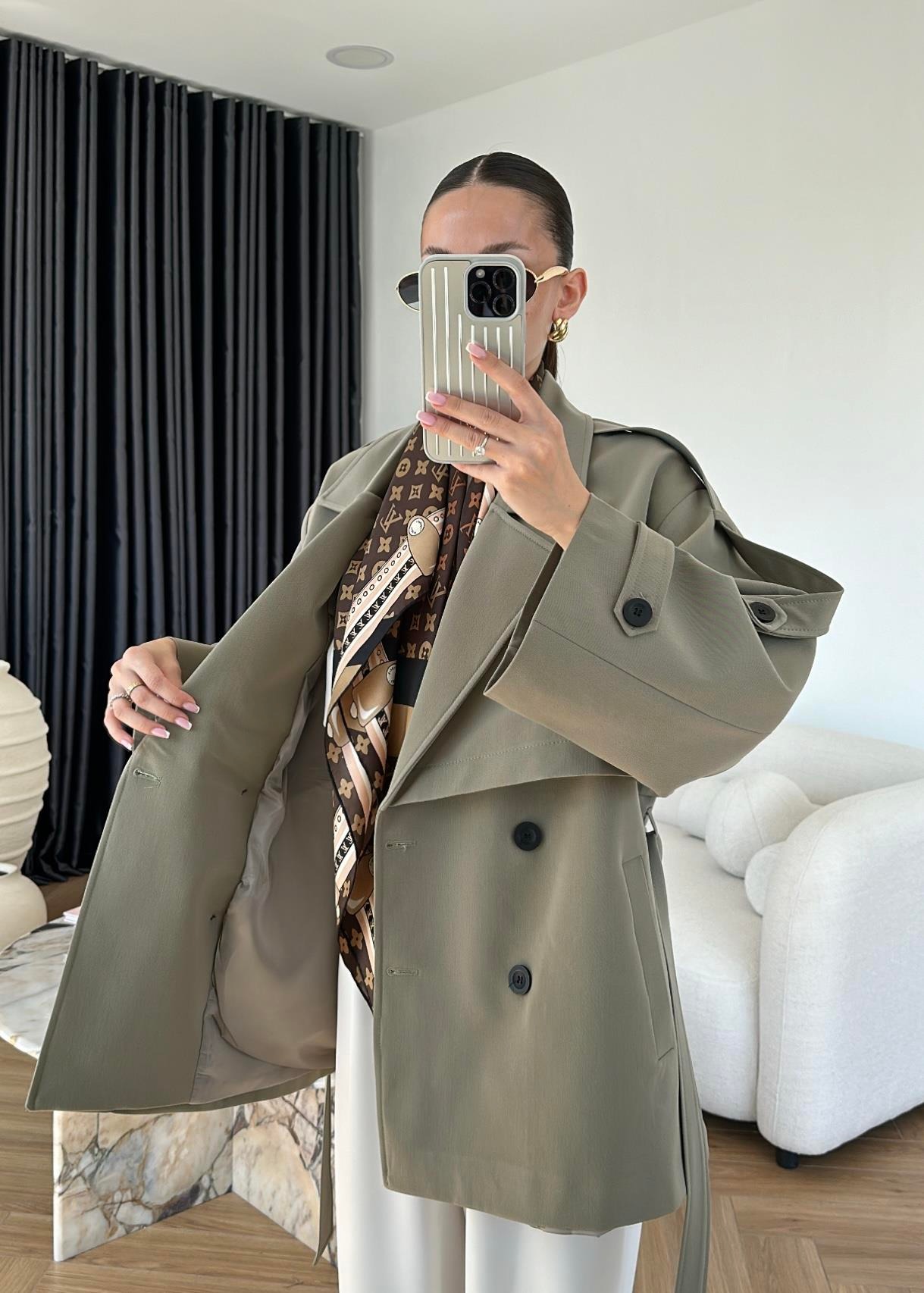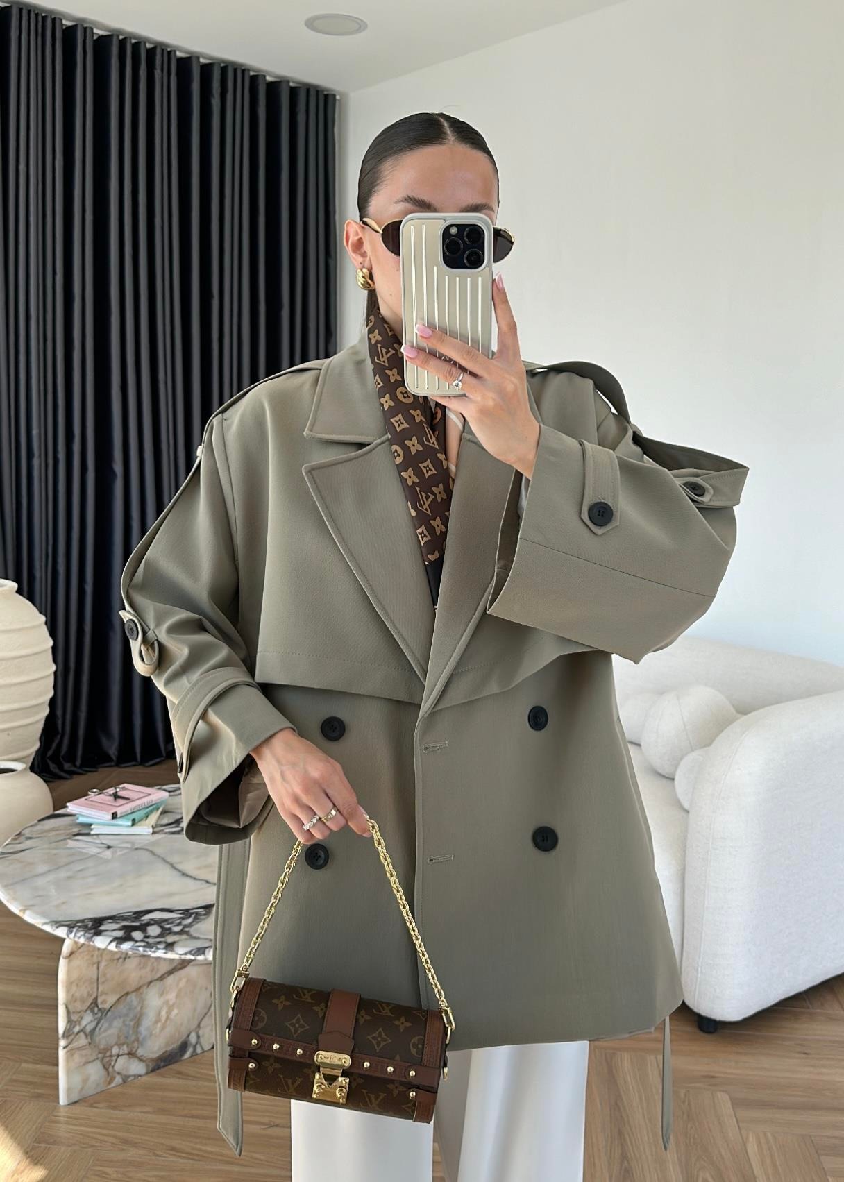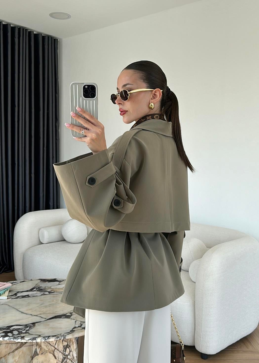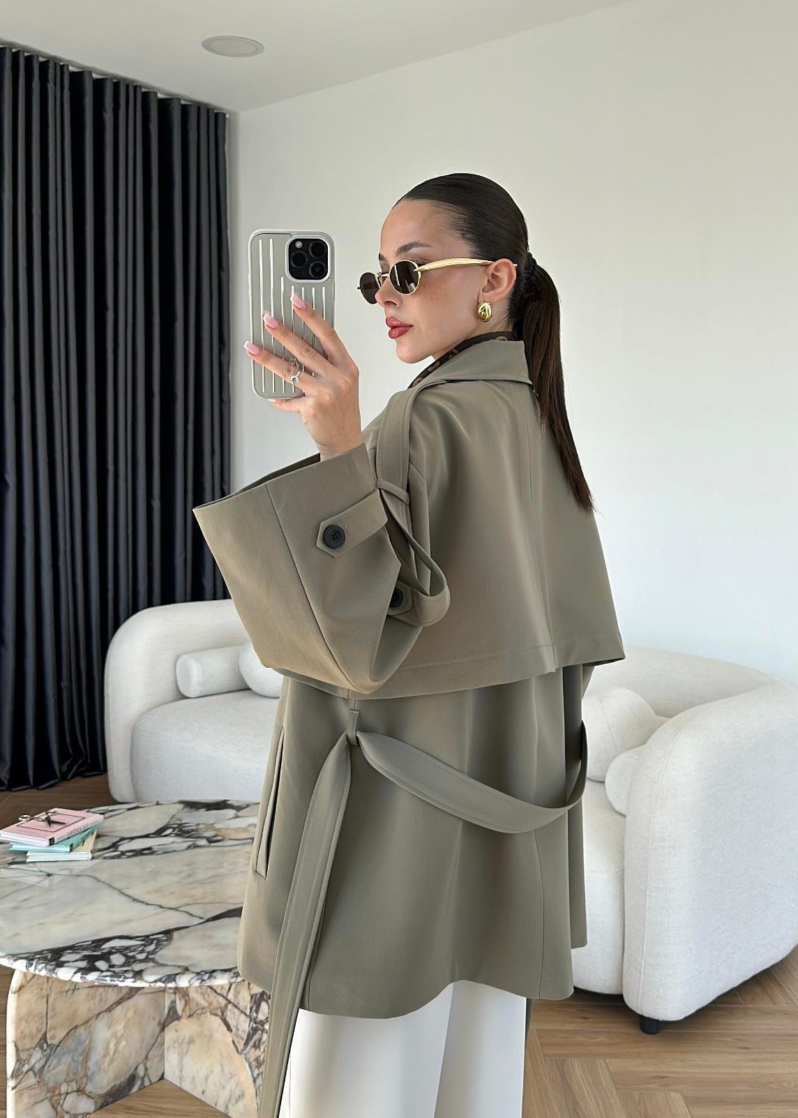 Rüzgarlıklı Ara Boy Trençkot HAKİ